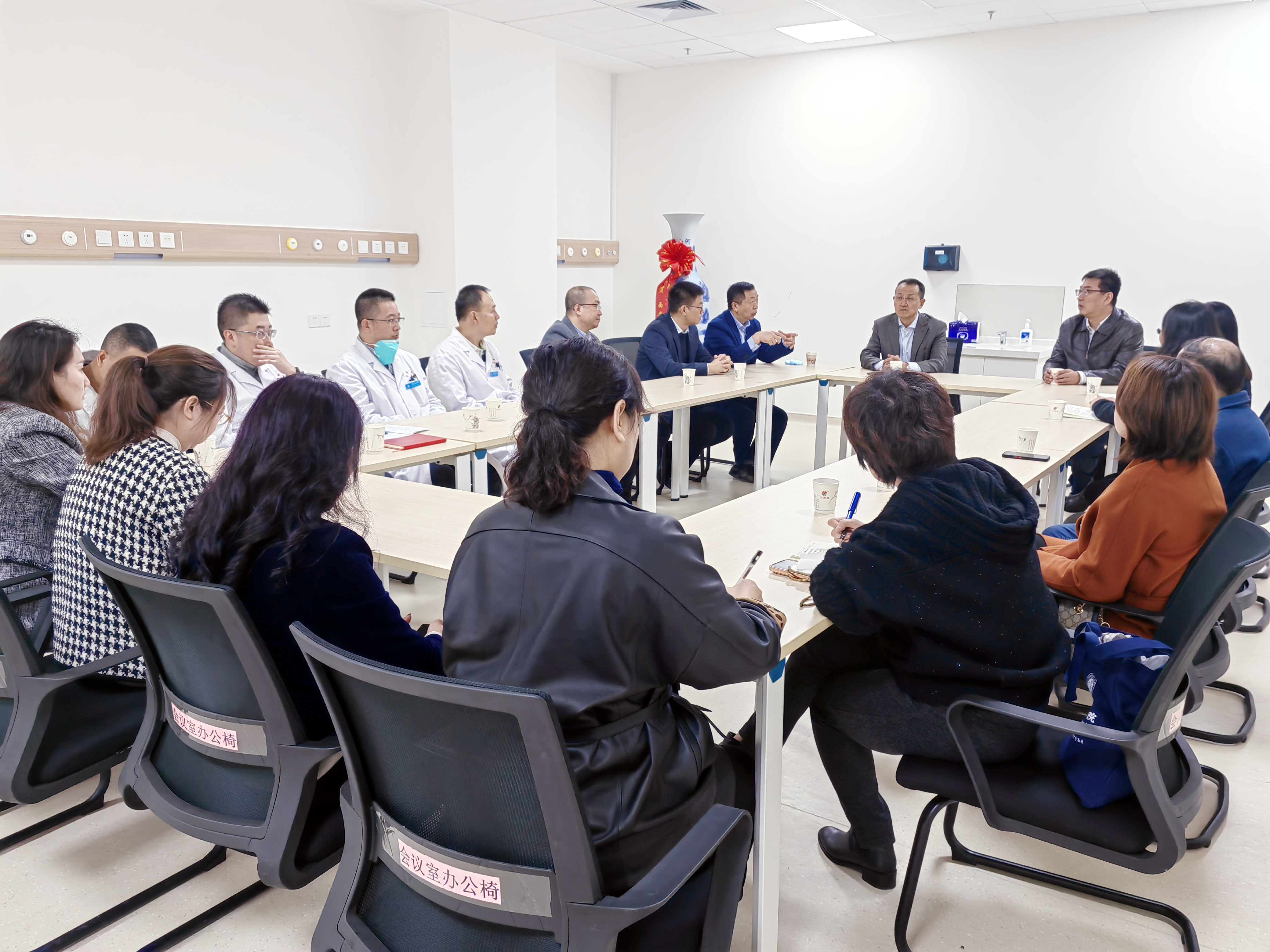 在座谈会上,副院长邵景就新院区试运营情况进行汇报,党委书记杨军乐向前期承担新院区筹建、试运营的先锋主力同志送上关怀及鼓励,对他们一直以来取得的成绩予以高度肯定。并强调,目前,男同视频 高新院区启用试运营工作是男同视频 中心工作的重中之重,新院区的启用,不仅仅是医疗资源空间的转移,更是思想理念、管理制度、运营模式的更新转换。
