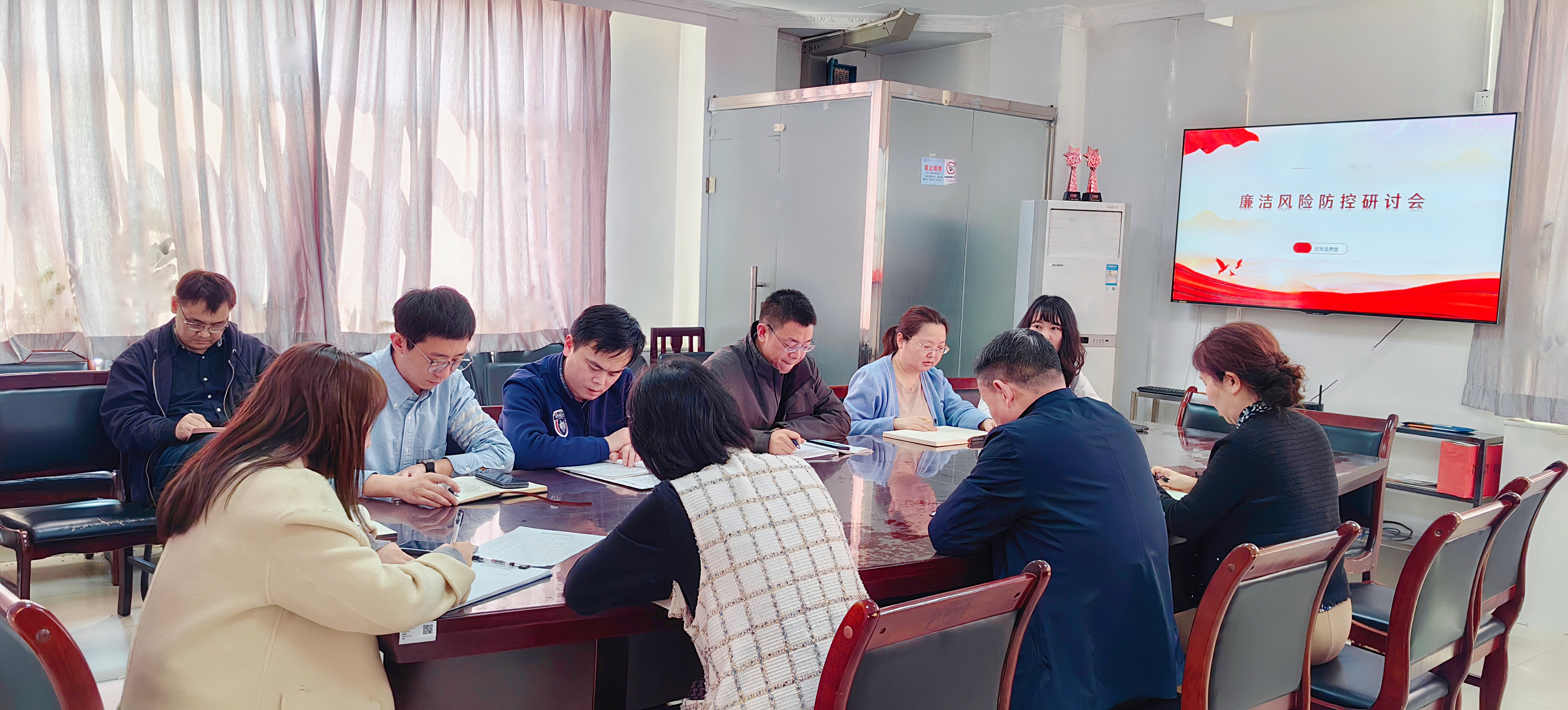 会上,重点科室负责人逐一汇报工作中廉洁风险防控执行情况和目前面临的问题,并就下一步优化管理制度和流程展开了热烈的讨论。