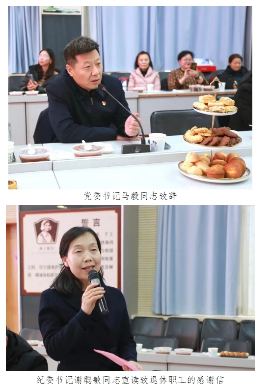 1月18日下午,腊八节当天,在男同视频 会议室,召开了一场即温馨又热烈的退休职工欢送会。党委书记马毅同志代表院党委致辞,纪委书记谢聪敏同志宣读了致退休职工的感谢信,院领导班子成员、相关科室中层及退休职工50余人参加了座谈会。