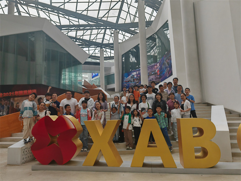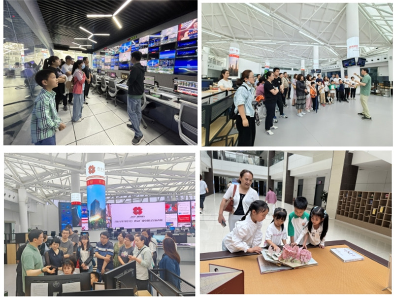 工会组织40名职工携子女,走进西安广播电视台开展参观研学、游戏互动主题实践活动。
