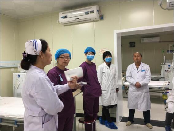 血透室联合控感科、医务科、质控科、护理部、检验科在血透室进行了HCV感染暴发演练。应急处置演练由血透室何旺主任主持,血透室医生袁瑾在复核血透患者检查报告单发现近期三名透析患者HCV抗体阴转阳,立即通知主任,经科内初步核查后判断疑似医院感染暴发,即刻上报控感科、医务科、护理部。各职能相关人员第一时间到达血透室,经再次核实判断疑似医院感染暴发。控感科雷小航科长立刻上报主管副院长、院长,启动院内应急预案。