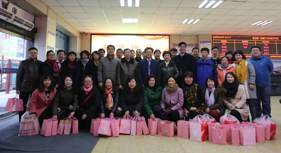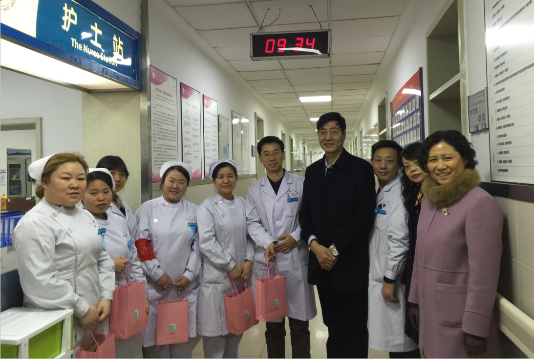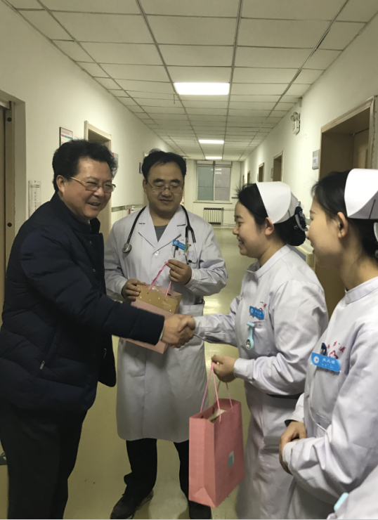 正月初一早,院领导带领全院行政中层干部来到医院,分成五个小组携带慰问食品,给节日期间仍坚守岗位的各科人员拜年,慰问人员所到之处一片欢声笑语,充满着祥和的节日气氛。