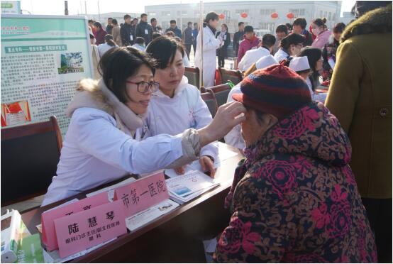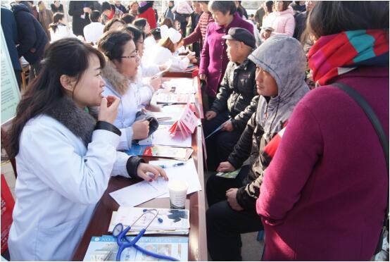 一行人员准时赶到医院大门,统一出发。到达现场后,大家拉横幅、搬桌椅、清点药品器械,摆放宣传板,忙得不亦乐乎,当地群众也都陆陆续续赶来。专家们发挥医学专长,为群众测量血压,讲解日常生活小知识,帮助现场群众树立健康的生活观念。直到中午12:00现场前来就诊的市民仍然络绎不绝,大家依然耐心的为每位患者诊疗,据统计,当天接待咨询的群众200余人,为群众测量血压100人次,建议进一步检查和治疗的约20人次,并在现场捐赠、发放医疗宣传书籍200余册、棉签4.5万支、注射器5400支、输液器1000支、漏斗车1辆、人体秤1台、病床5张、避孕套100盒、各类药品若干。