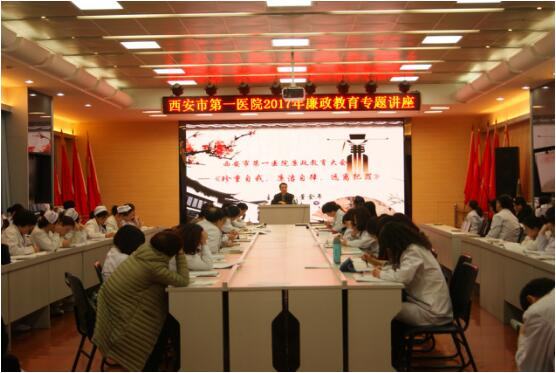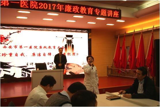 邀请原西安市检察院高级检察官、西安市预防职务犯罪宣讲团副团长、西安交大预防职务犯罪主讲人董金年同志进行了题为《珍重自我、廉洁从业、远离犯罪》的廉政教育讲座。会议由纪委书记白敏芳主持,院领导、全体中层和部分党员代表聆听了讲座。