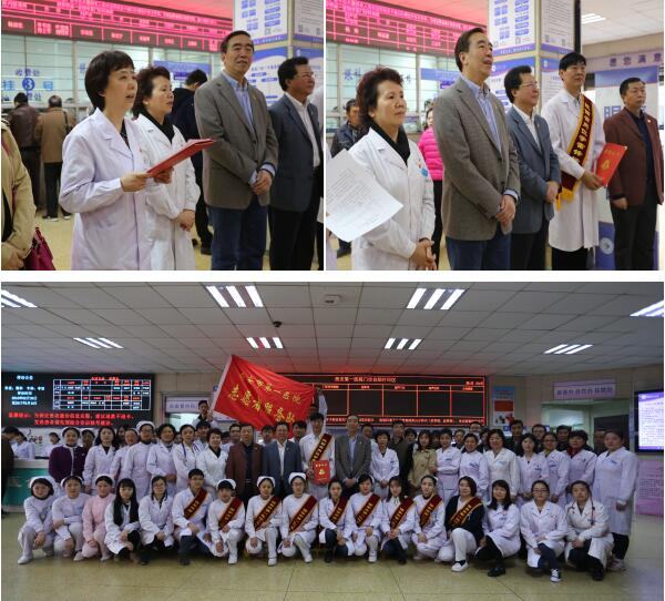 3月3日早,院领导及志愿者代表共聚医院门诊大厅,男同视频