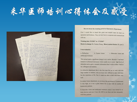 的邀请让我们有机会来到中国这个伟大的国家,尽管离非洲万里之遥,但是医院里中国同事家人般的关爱使我们不觉得自己是外国人,通过三个月的学习不仅更新了我们的理念,更使我们掌握了很多我们国家和医院没有的知识和技能,我希望回国后将这些令人兴奋的消息告诉我的同事们,更好地应用光明行医疗队馈赠给我们的设备和教给我们的技术。离别是伤心的,我们会牢记每一个援助和关心我们的中国朋友,珍藏每一件收到的礼物,我祈祷还有机会再见大家,我祈祷你们和美丽的中国一切安好!”