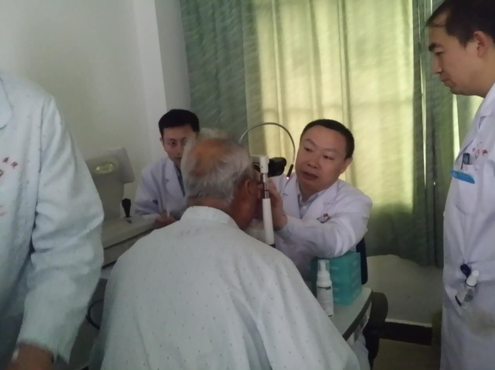 当天早上7:50,院领导分组到眼科各个病区参加晨交班,宋国忠副院长一组参加了眼七病区晨交班、三级医生查房和疑难病例讨论会。在晨交班会上宋国忠副院长一行认真听取了交班程序和内容,并提出了指导性的意见和建议。随后在眼科医院副院长张红兵带领下进行了三级医生查房,重点是一名急性视网膜坏死患者。首先是一线医师储昭节博士介绍病情,该患者一周前在男同视频
