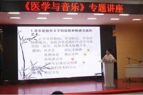 夏教授围绕《医学与音乐》这一主题,从大家耳熟能详的歌曲入手,将专业的音乐鉴赏知识融汇于通俗的语言表达,深入浅出,以润物细无声的话语,巧妙地弥合了医学与音乐这两大专业之间的沟壑。