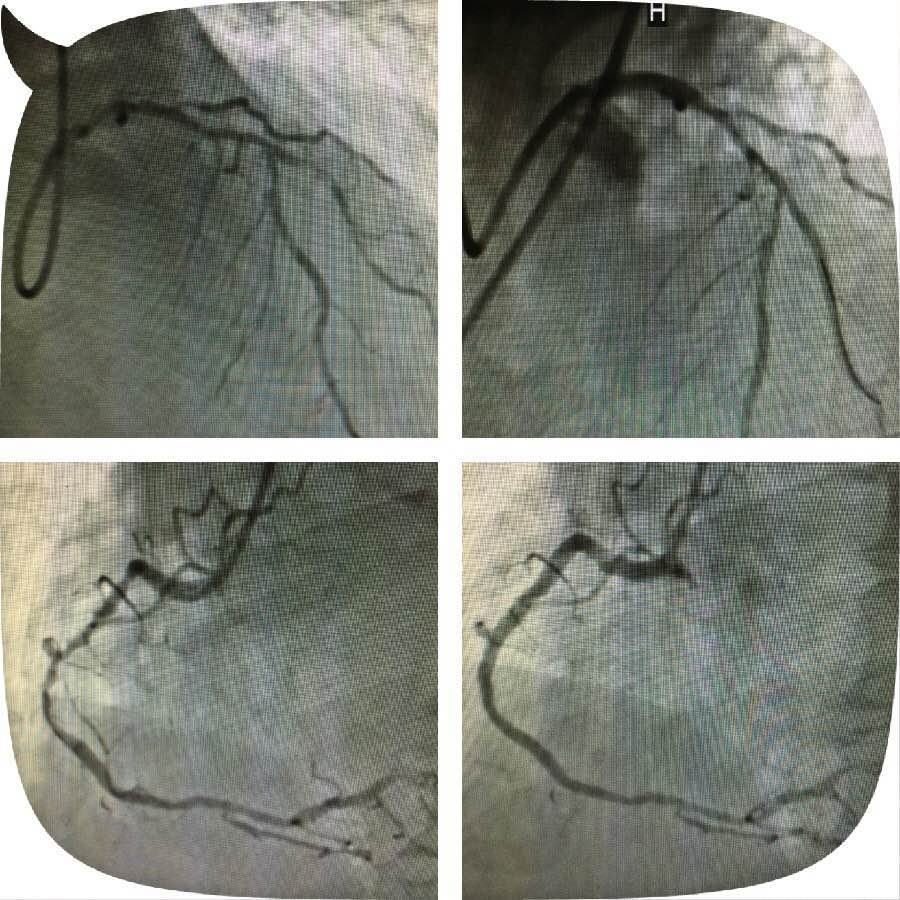 心五病区,入院后心电图示非ST段抬高心肌梗死,急诊行冠状动脉造影检查发现左主干钙化严重狭窄,合并右冠脉钙化严重狭窄病变,死亡风险极高。考虑患者病变复杂,贸然行左主干介入治疗风险极高,针对此患者特殊情况,心血管病医院组织专家进行缜密讨论,并与患者及家属充分沟通交流后,制定了血运重建的合理治疗方案。首先完成患者右冠脉钙化并严重狭窄病变的介入治疗,再次应用切割球囊行左主干严重钙化狭窄病变和对角支严重狭窄病变的介入治疗。