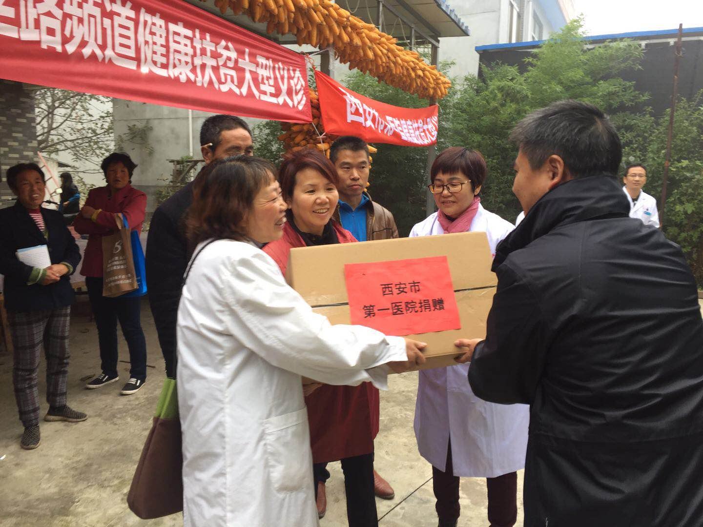 携手西安广播电视台丝路频道赴蓝田县汤峪镇汤三村开展扶贫义诊活动,把送医、送药、送健康活动办到了村民家门口。
