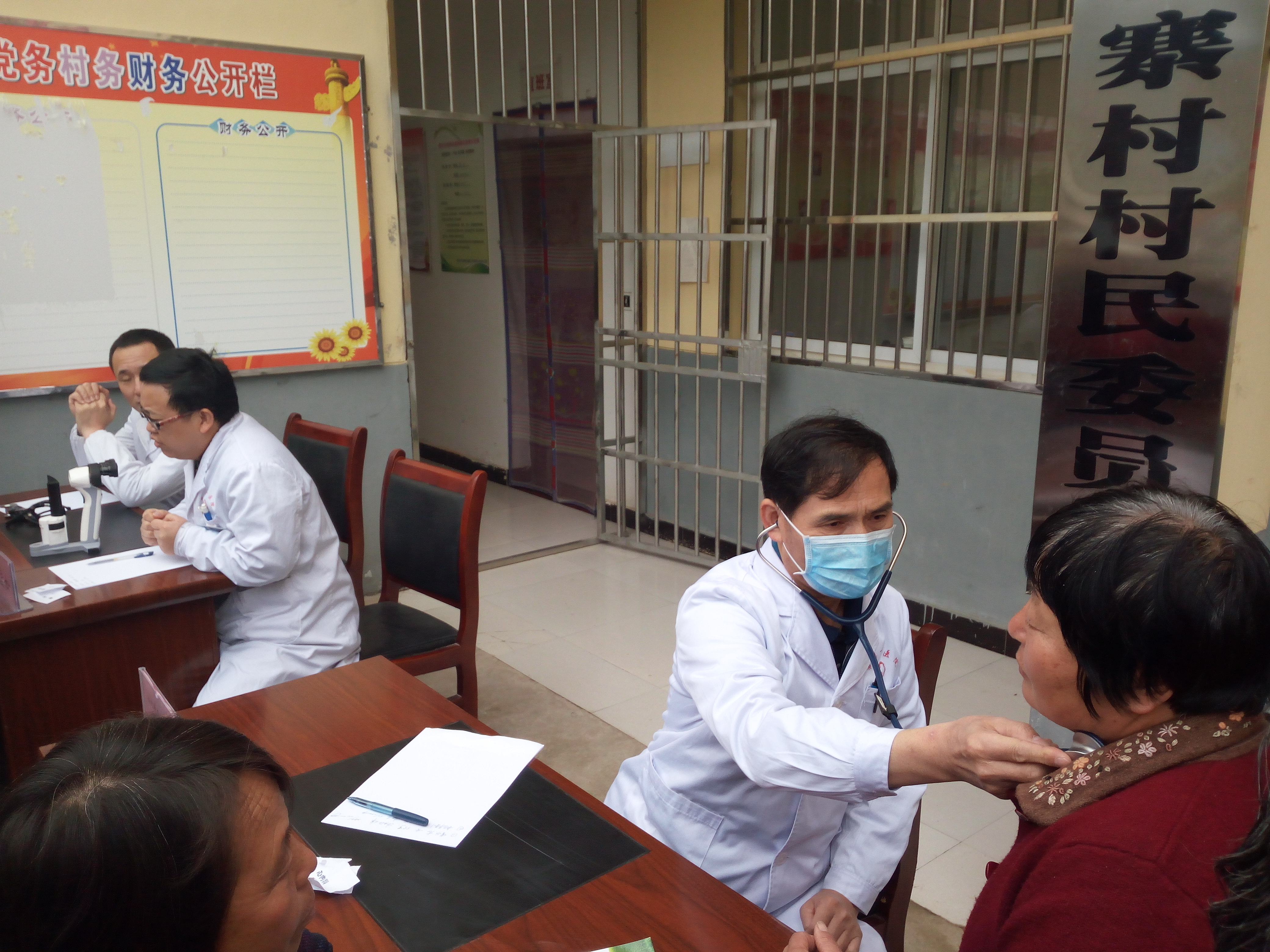 活动组织了眼科、心内科、神经内科、外科和康复科等学科专家以及本支部的其他医护人员,上午九点来到冯官寨村时,前来就医的村民已经聚集了很多,义诊期间,不但帮村民诊察了疾病,还向他们宣传相关健康知识,提高他们防病治病的能力。本次义诊共接诊190人次,测血压120多人次、测血糖80多人。还根据医生医嘱发放药品,高血压患者还现场服用降压药,并对其服药后血压进行复查观察。发放健康知识传单一百多份。