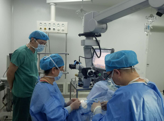 眼七病区吴惠琴副主任主刀,由拥有该项技术的中国自主研发专科产权,中山大学中山眼科中心眼科学国家重点实验室高前应教授亲临现场指导,使得手术顺利而成功。