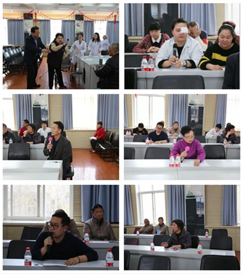 多科室就诊住院数次,今天在神经内科护士的陪同下坐着轮椅来到会场。她激动的告诉大家:“十年了,我今天终于可以站起来了,你们谁都不用扶我,也不用拐杖,我现在就能站起来!我自己走!”。并一一细数她在多次住院中遇到的好医生、好护士的名字:葛兴利、李延、任自才、孙富英、任燕萍、刘红娟、马挺、刘旭、周瑞堂、刘伟民……。参会患者和家属代表根据自己的就医体验,积极发言,认真填写满意度调查表,对改善男同视频