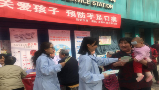卫防科联合南二环门诊走进永松路社区进行手足口病科普宣传活动 。