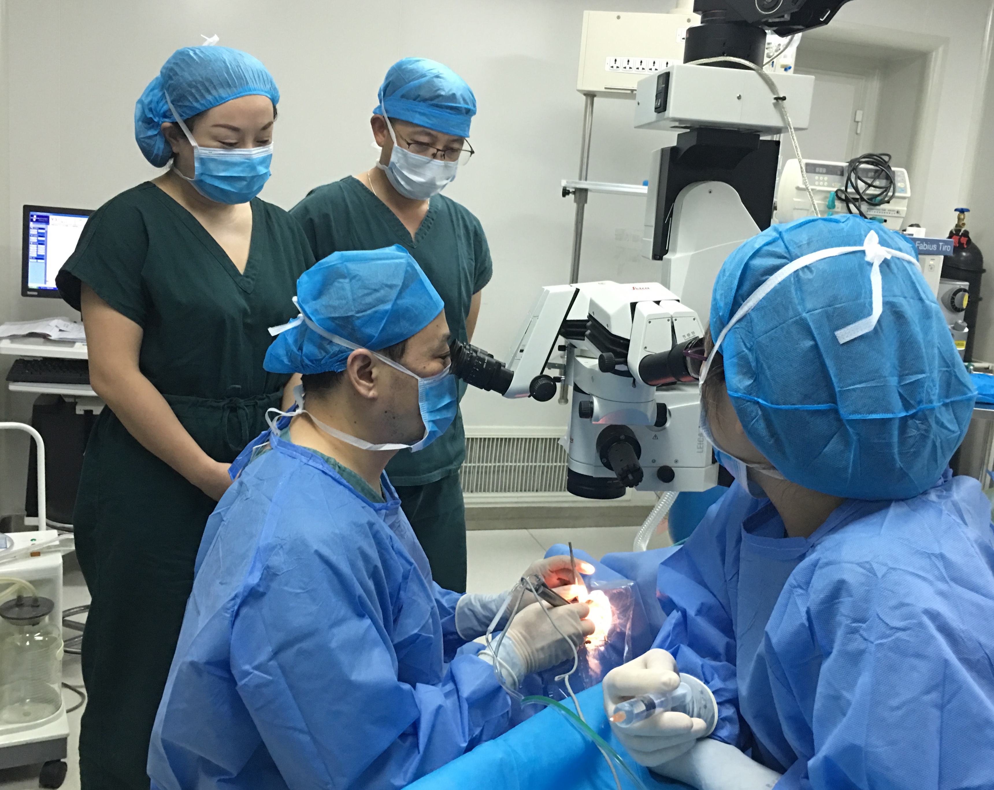 眼科医院副院长马挺、眼六病区副主任王睿、麻醉科副主任冯大鹏、眼科手术室护士长朱薇分别对两位患者进行了术前评估,决定于7月18日为两位患者实施“无痛性”白内障手术。在三方的共同协作下术中患者生命体征平稳、术后患者高兴地说“手术这么快就结束了,一点感觉都没有,解决了我多年的困扰,你们的技术真高超呀!”