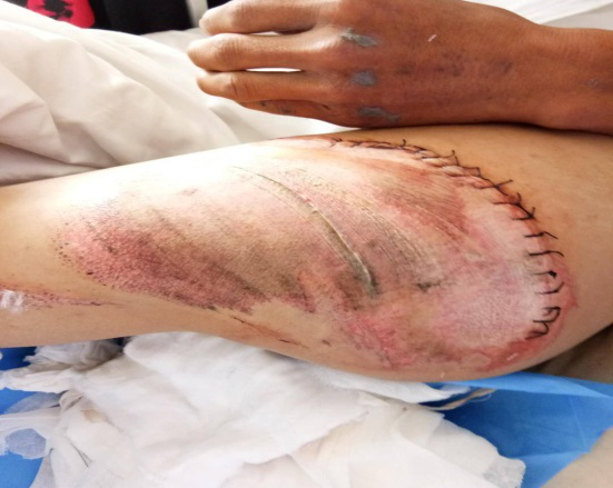 骨科团队经过数小时细致而彻底的清理创面,清洗污物及一期修复缝合,患者术后未发生严重感染及其他并发症。