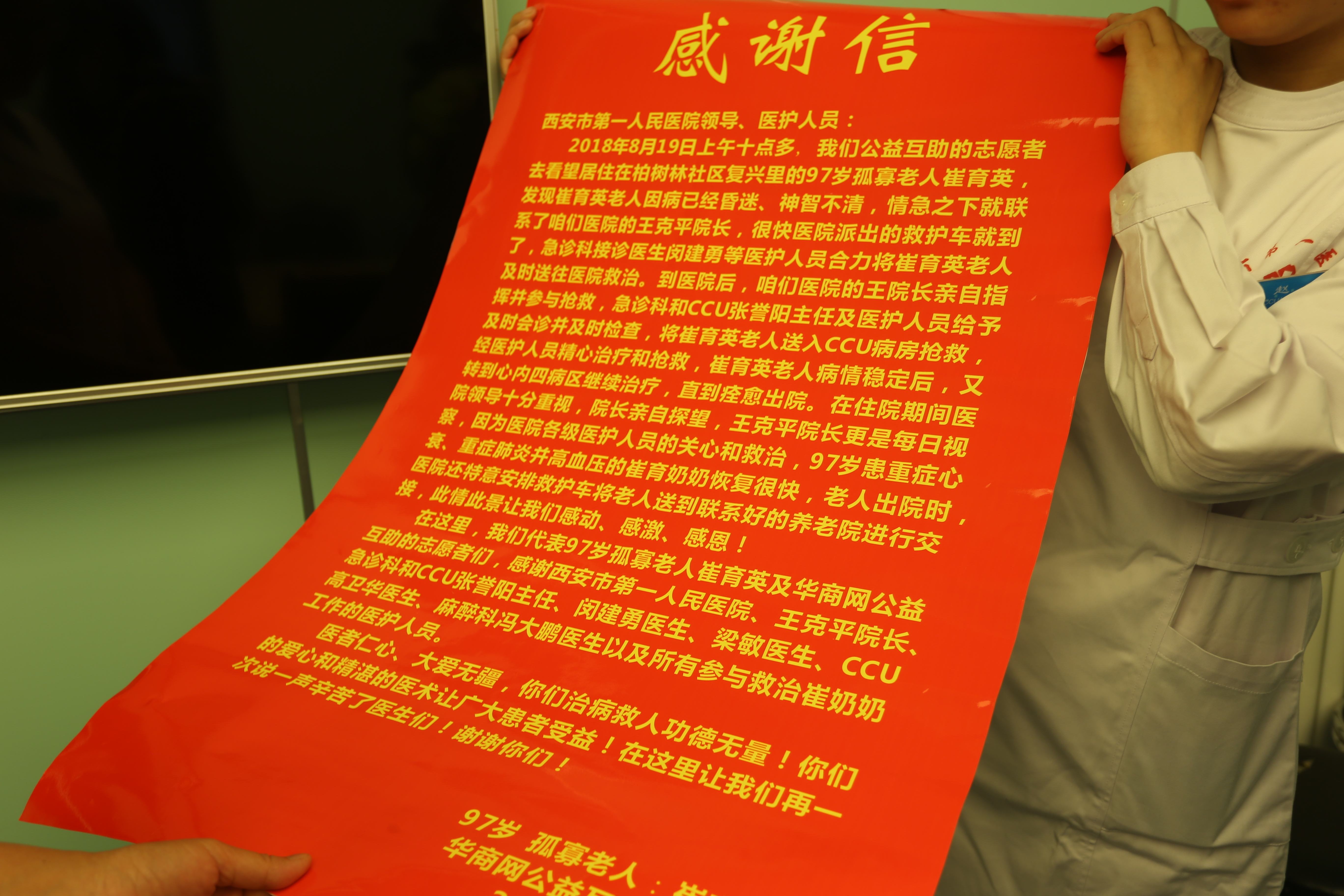 住院期间,医护人员对她的精心治疗和护理,特意写下了一封感谢信,临终前嘱托志愿者替她送来。