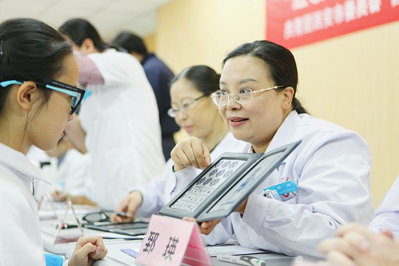 简短的启动仪式后,由第一医院张红兵主任、邢咏新主任等13名专家组成的医护团队便投入到紧张而有序的筛查工作中。本次活动历时两小时,共为200余名学生做了眼部筛查,并为他们建立了眼健康档案,帮助同学们掌握适用的眼健康生活常识,同时提高健康防控意识,培养正确的就医理念。