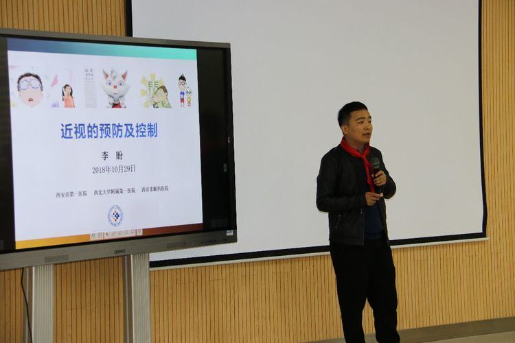 的李盼医生结合生动有趣的生活故事,深入浅出地阐述了近视给学习、生活带来的极大不便,详细地讲解了的预防和控制近视的基本知识。他从保持正确读写姿势、养成良好的用眼卫生习惯等方面向学生介绍了如何保护眼睛、预防近视。最后特别提醒同学们不要长时间用电脑看电视,要积极参加户外运动。