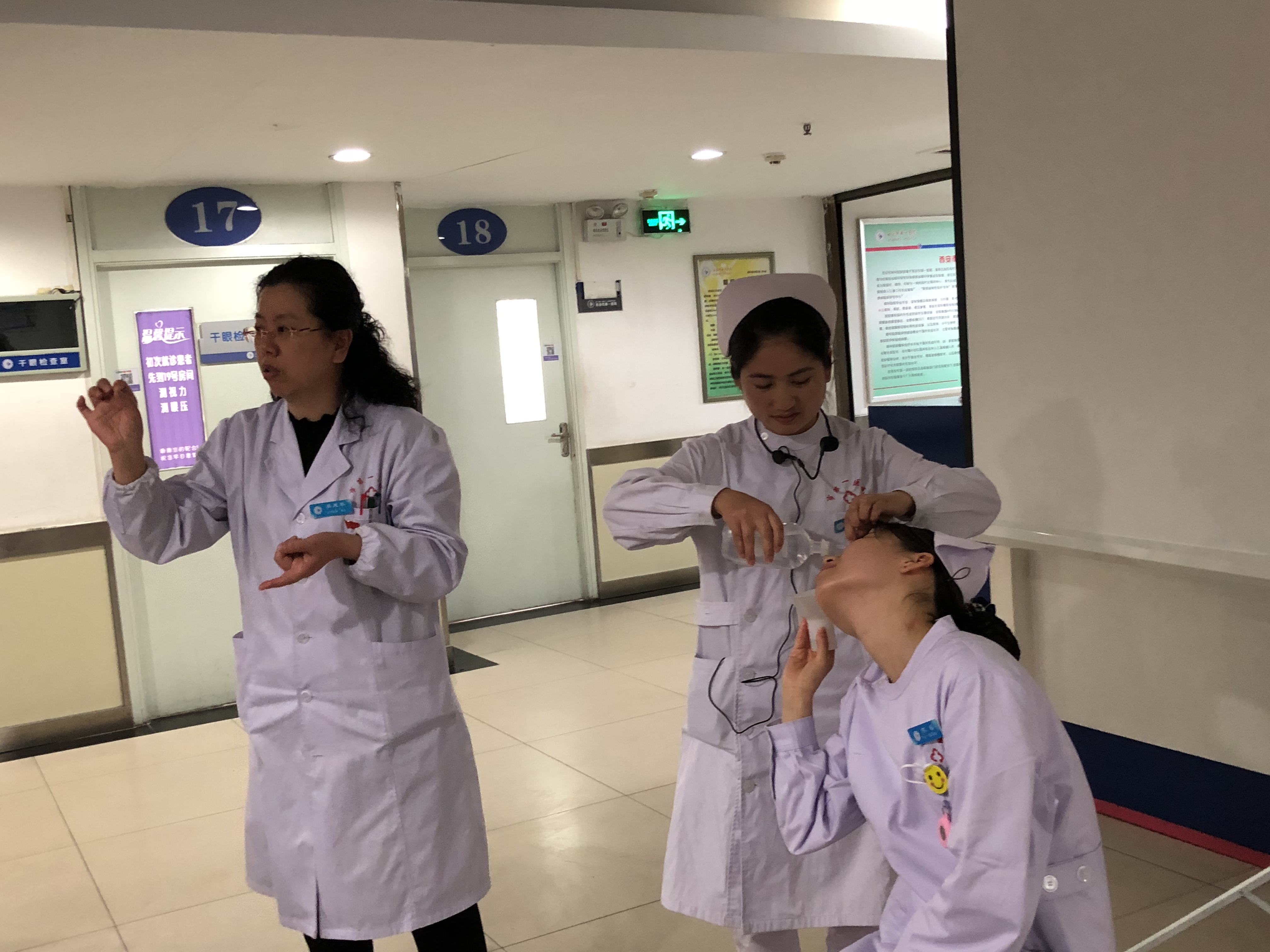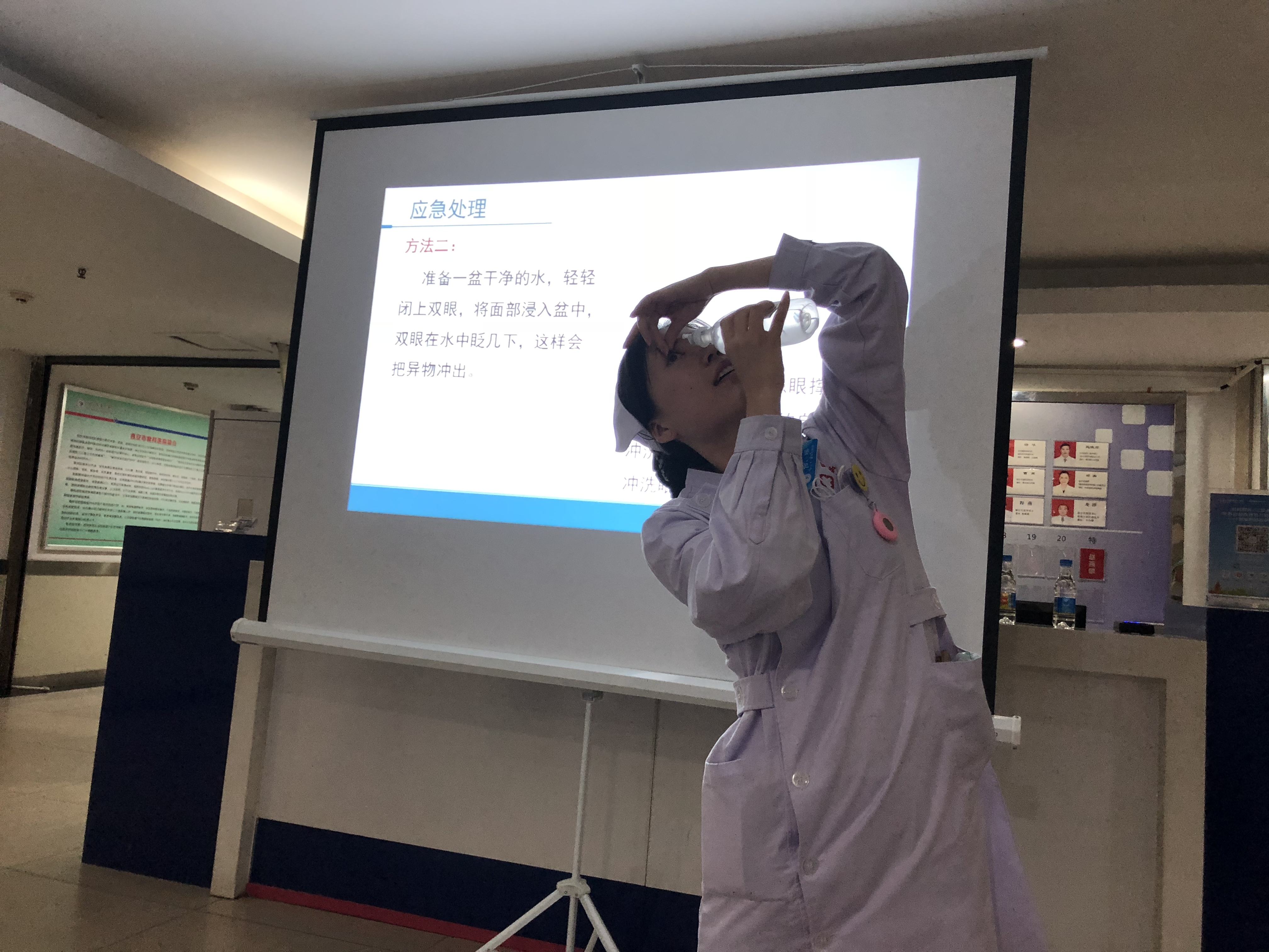 此次特邀眼科医院眼外伤病区吴惠琴主任医师为大家讲解了眼外伤的相关预防和治疗。吴惠琴主任向所有在场的患者及家属特别强调生命第一的原则,为了使大家更加直观的了解眼外伤,她将模型眼球展示给大家、直面讲解眼睛的解剖结构、眼外伤的分类、各型眼外伤的基本救治方法及注意事项。吴慧琴主任讲解生动精彩,语言通俗易懂让大家对眼外伤深刻的认识和体会,使患者及家属对眼外伤引起了高度的重视,随后,此次救治小组的张妍护师和何瑶护士给大家讲解眼外伤的防治与自救处理。张妍通过真实视频案例告知大家此病的严重性与危害,并现场实景演绎了发生化学性灼伤和眼睛异物的紧急自救方法,手把手指导听众如何冲眼、如何争取时间将眼伤害降到最低。吴主任团队悉心、耐心的讲解博得所有与会听众的认可和赞许。