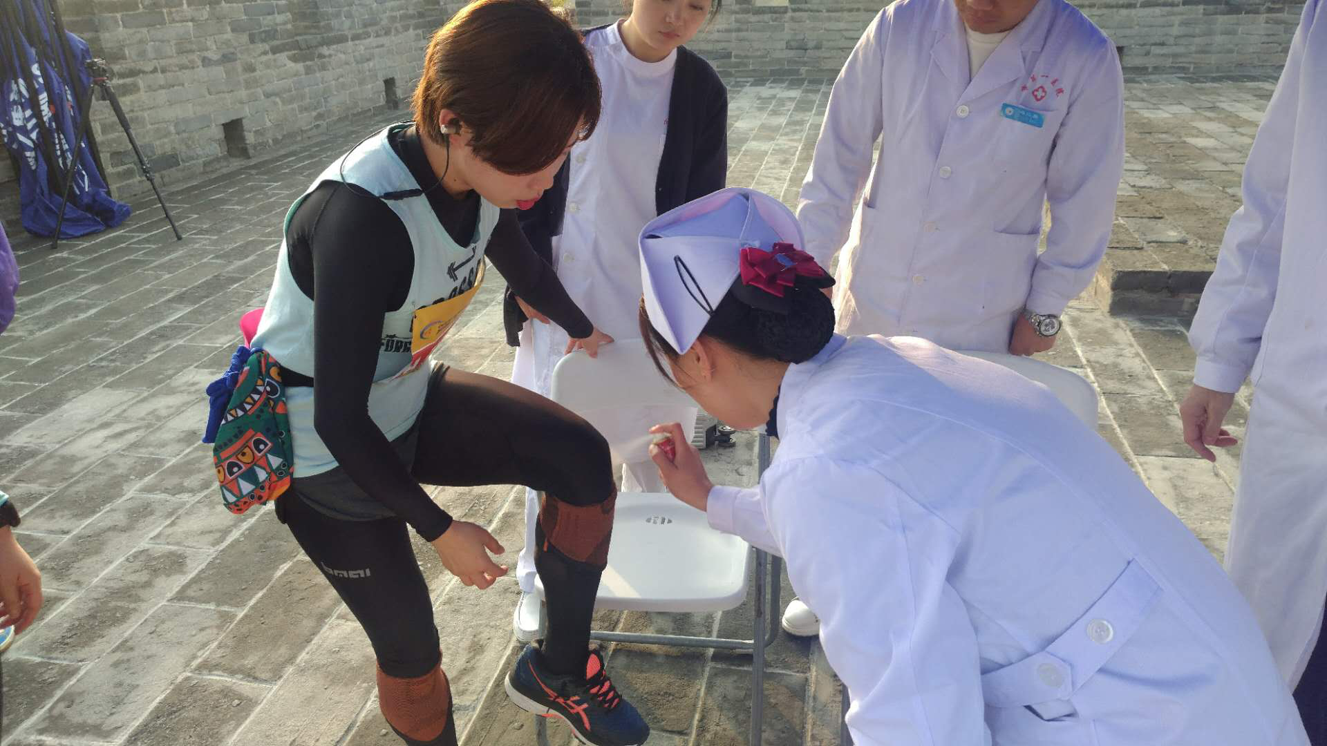 王克平副院长带领医疗保障队员们准时抵达西城墙,自行搬运携带的担架、氧气袋、心电除颤监护仪等急救设备,大家不畏严寒坚守岗位,工作认真负责,直至比赛结束,男同视频