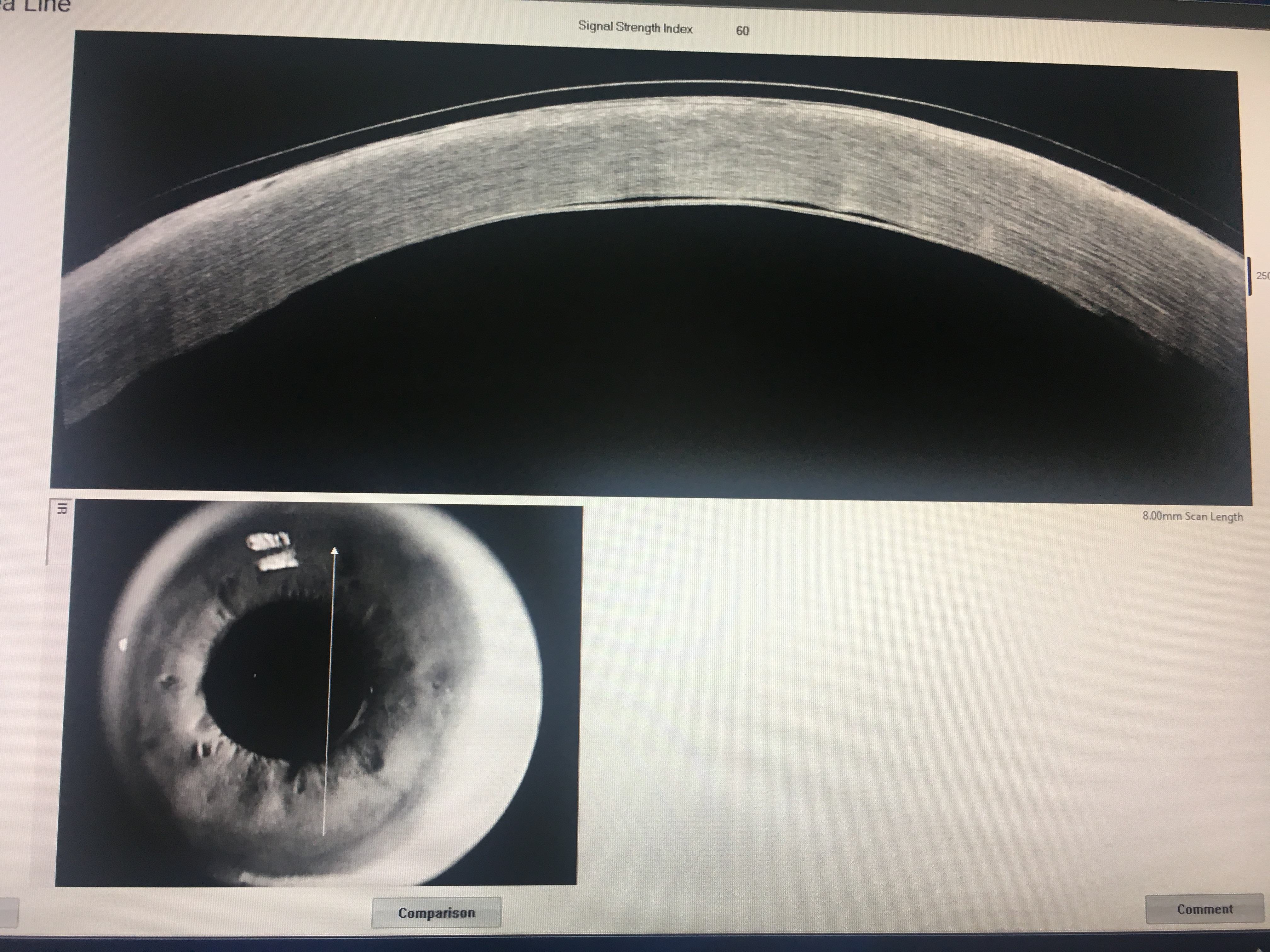 门诊检查,诊断“右眼大泡性角膜炎(角膜内皮失代偿)”,予药物点眼缓解患者不适症状, 于2018年10月20日行DMEK角膜内皮移植手术。为了保证移植供体尽早植入受体,缩短内皮体外暴露时间,在手术室和眼库同志的大力配合下手术分台同时进行。 王小东主任医师制备角膜内皮植片。高伟主任将角膜内皮供体植入患者眼内,使其展开、定位、贴合,移植过程仅用20分钟,患者术后角膜透明、角膜内皮植片贴服良好,视力显著提高,圆满达成了预期效果。经过1月多的复诊,角膜内皮存活良好,角膜透明,患者裸眼视力恢复到0.5,无不适。