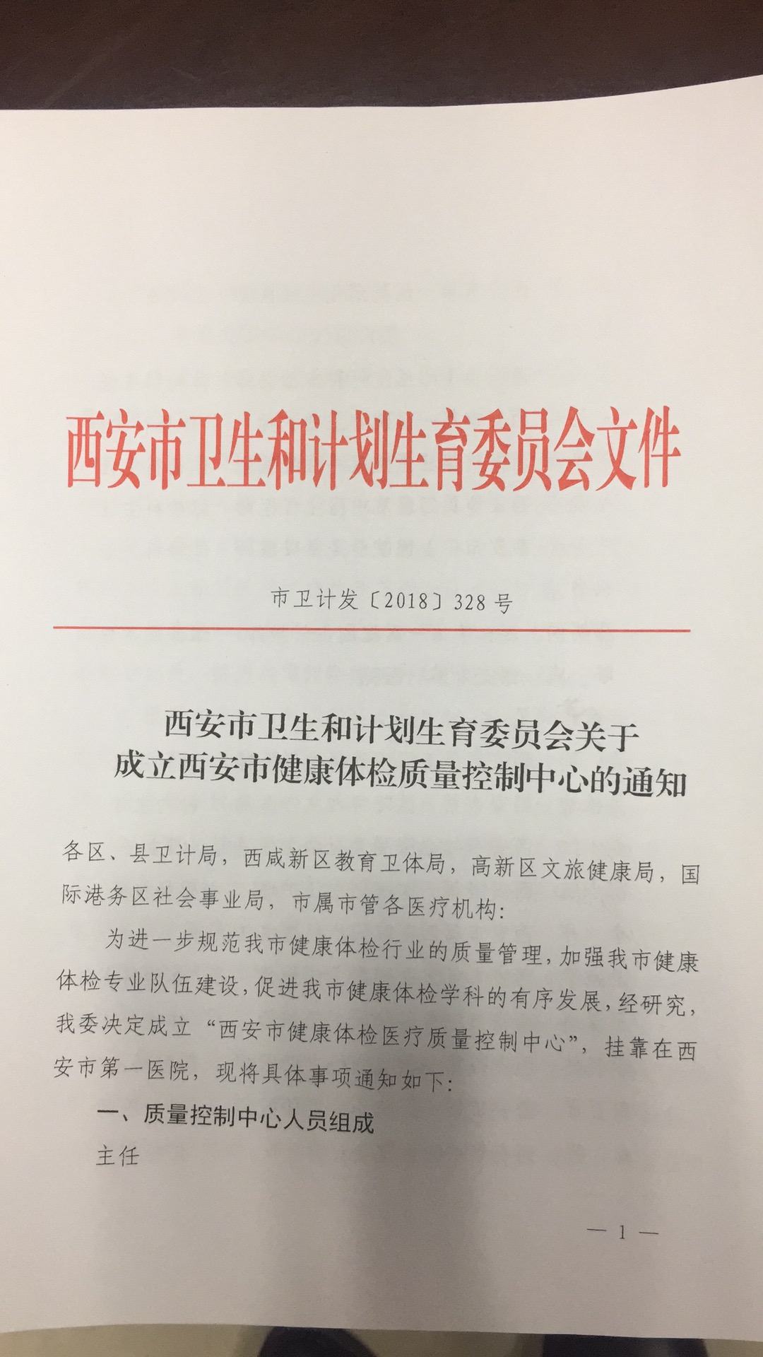 申报成立西安市健康体检质量控制中心获得批准。