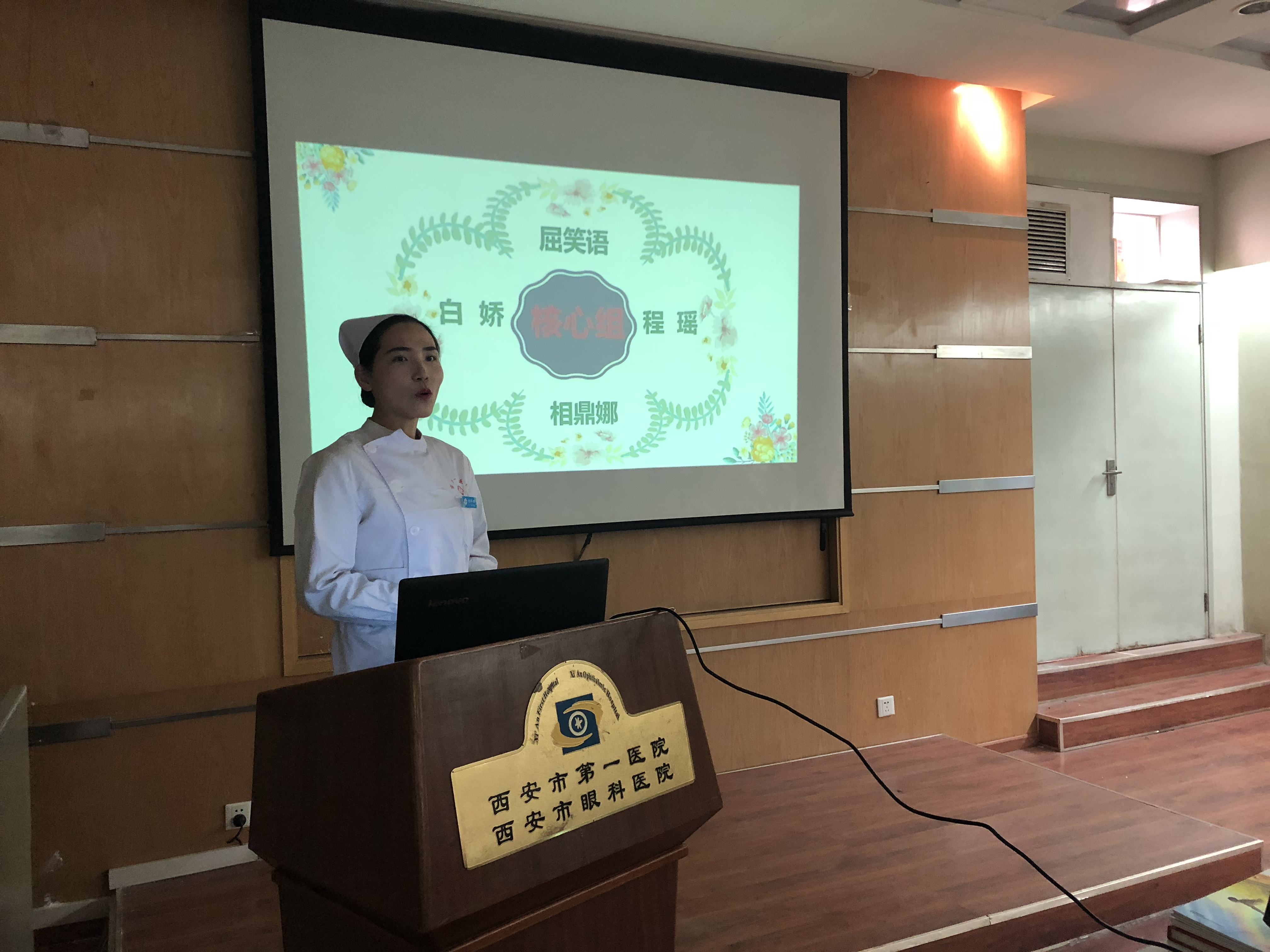 2018年12月10日下午,由眼科手术室举行的以“携安全、谋创新、展未来”为主题的年终总结汇报赛在眼科九楼会议室顺利召开。此次会议有幸邀请到了第一医院邵景副院长,王彤眼科副院长,控感科主任雷晓航,护理部副主任张蕾作为评委。会议由眼科手术室护士长朱薇主持。通过抽签依次由四个护理质控组长以现场比赛的形式汇报,本次活动的创新点是院级评委通过纸质打分,本科室人员规避原则后互评分,通过“京颐512”系统现场打分,为男同视频