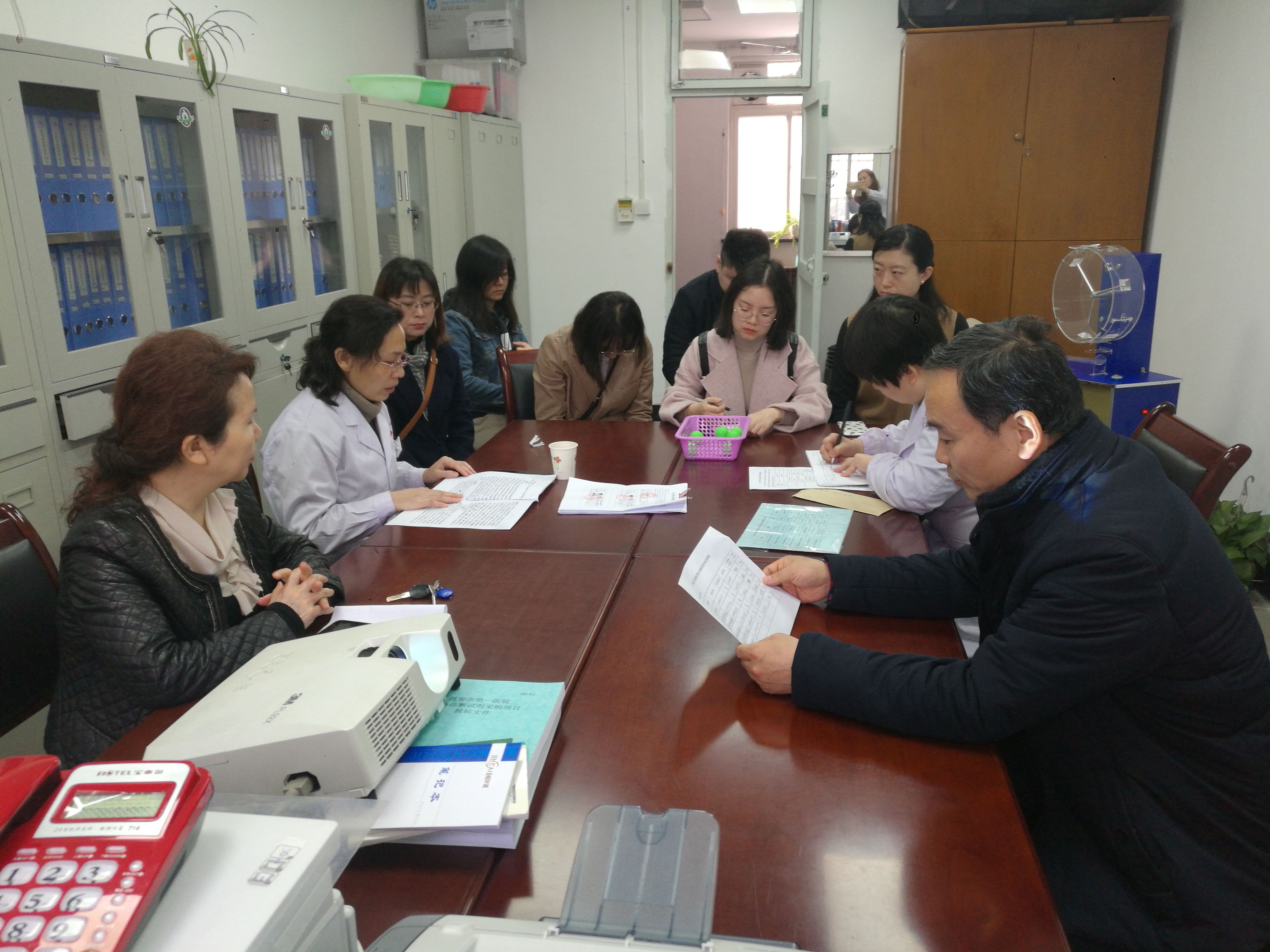 2019年度第一次采购项目招标代理机构抽取仪式,此次采购包括医院二路供电增容等四个项目,来参加抽取的招标代理机构共六家。纪委书记白敏芳、纪委副书记胡泽华参加了此次抽取工作,对招标办招标代理机构抽取工作全程监督,招标办严格执行规范的操作流程,使用电动摇号机进行随机抽取招标代理公司,此次会议由招标办主任王西民主持。