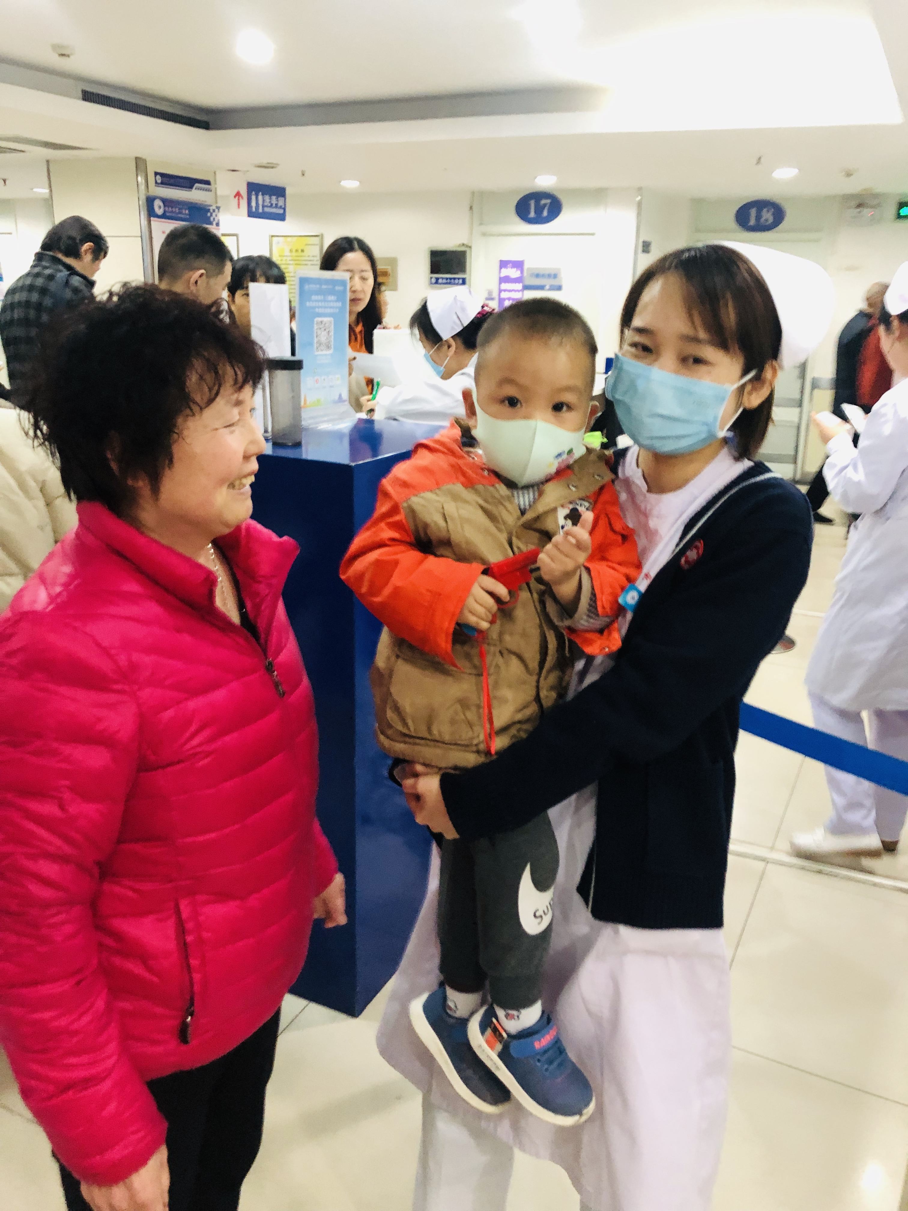 眼科门诊导诊台接到一位父亲焦急的求助,家长在挂号处挂号时,因一时人多不慎将自己不到两岁的儿子弄丢了。接到求助后第一时间,眼科门诊刘超护士长联系保卫科并向家长索取宝宝照片后,门诊大厅所有保安工作人员立即全面搜索。同时帮助家长向南大街派出报案,取得必要的帮助。门诊办、保卫科、眼科门诊工作人员根据孩子外貌衣着特征,拿着孩子照片竭力四处寻找,通知各科室人员发现丢失孩子立刻告知眼科门诊护士长。就在这紧张时刻,贺慧会护士寻找到1楼电梯口时发现一位阿姨抱着的宝宝穿着外貌和照片一致,阿姨说这个孩子找不到家长急哭了,所以她抱着孩子来到导医台寻求救助。“孩子找到了”贺惠会立即电话联系眼科门诊护士长,经过大家多方共同努力,终于找到了迷路的小宝宝,匆匆赶来的家长见到宝宝平安无恙也激动地连声道谢,非常感谢热心的阿姨,非常感谢医务人员竭力的寻找!