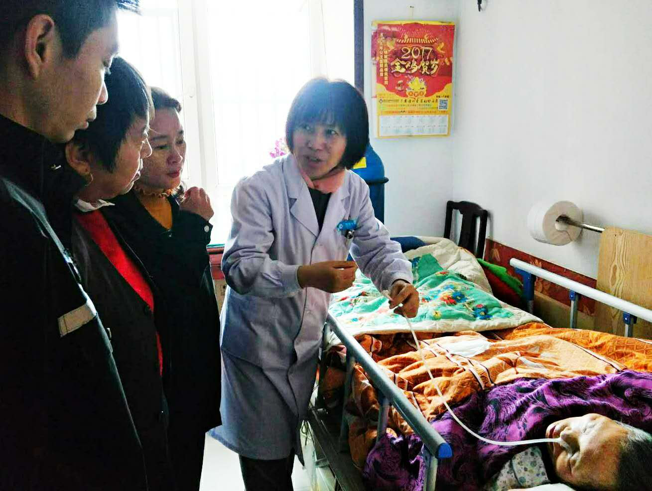 患者刘某某,女,76岁,脑瘤术后长期卧床在家休养,老伴也是高龄多病缠身,两位老人相依为命,因行动不便,每月更换鼻饲管和导尿管就成为困扰老人的老大难问题。我们医院的慢病出诊服务彻底为老人和家属解决了后顾之忧,医护人员在电话中详细了解了患者的病情和需求后汇报给市急救中心调度台,在不影响紧急医疗服务的前提下派车,上门为患者进行专业化、亲情化的床旁病情评估、营养指导、更换尿管服务。为了进一步评估和细化服务流程,急救中心副主任郑军梅又于次日带领医护人员上门回访征求患者及家属意见,检查留置尿管和鼻饲管质量,患者老伴充分肯定了男同视频