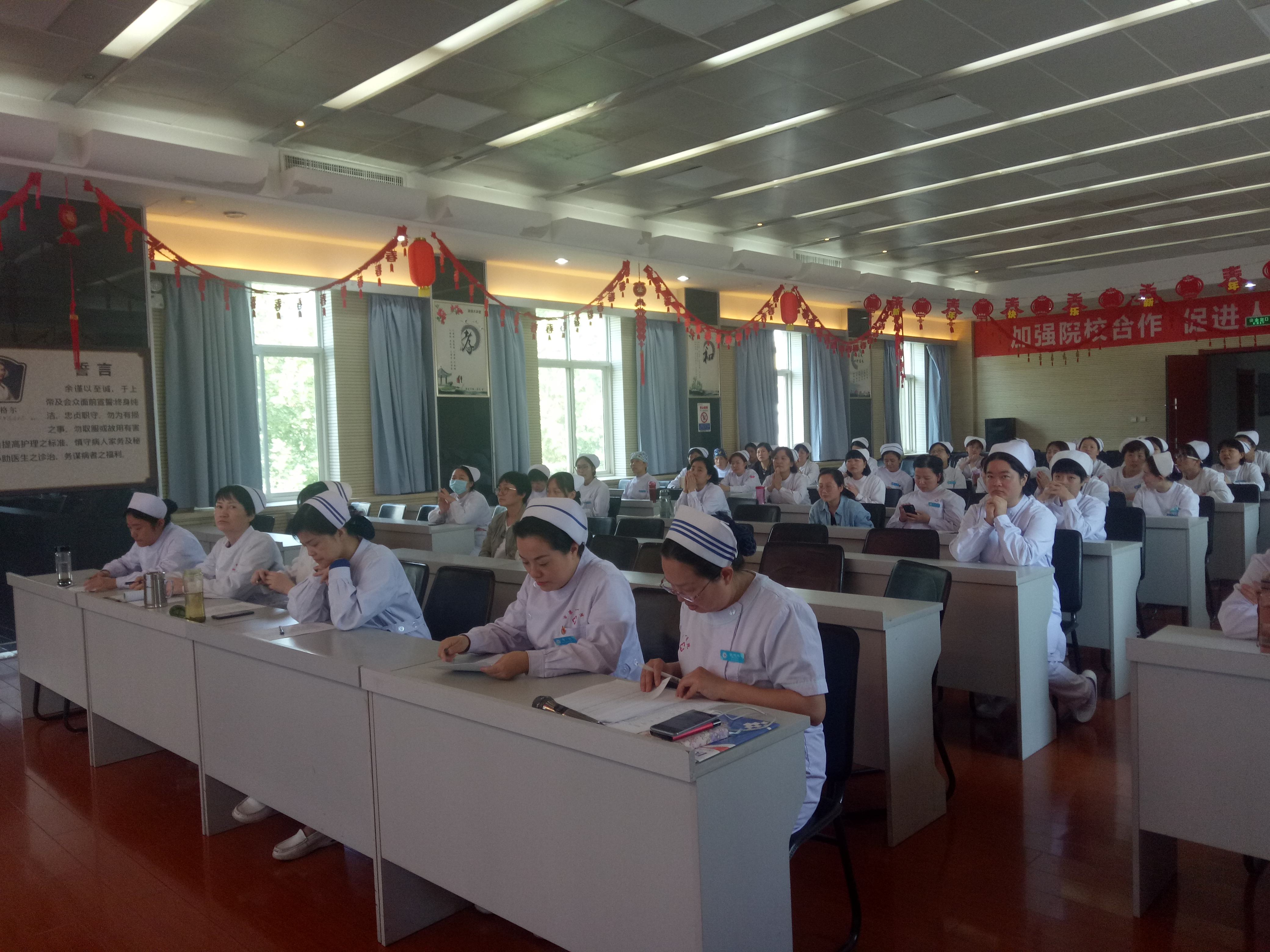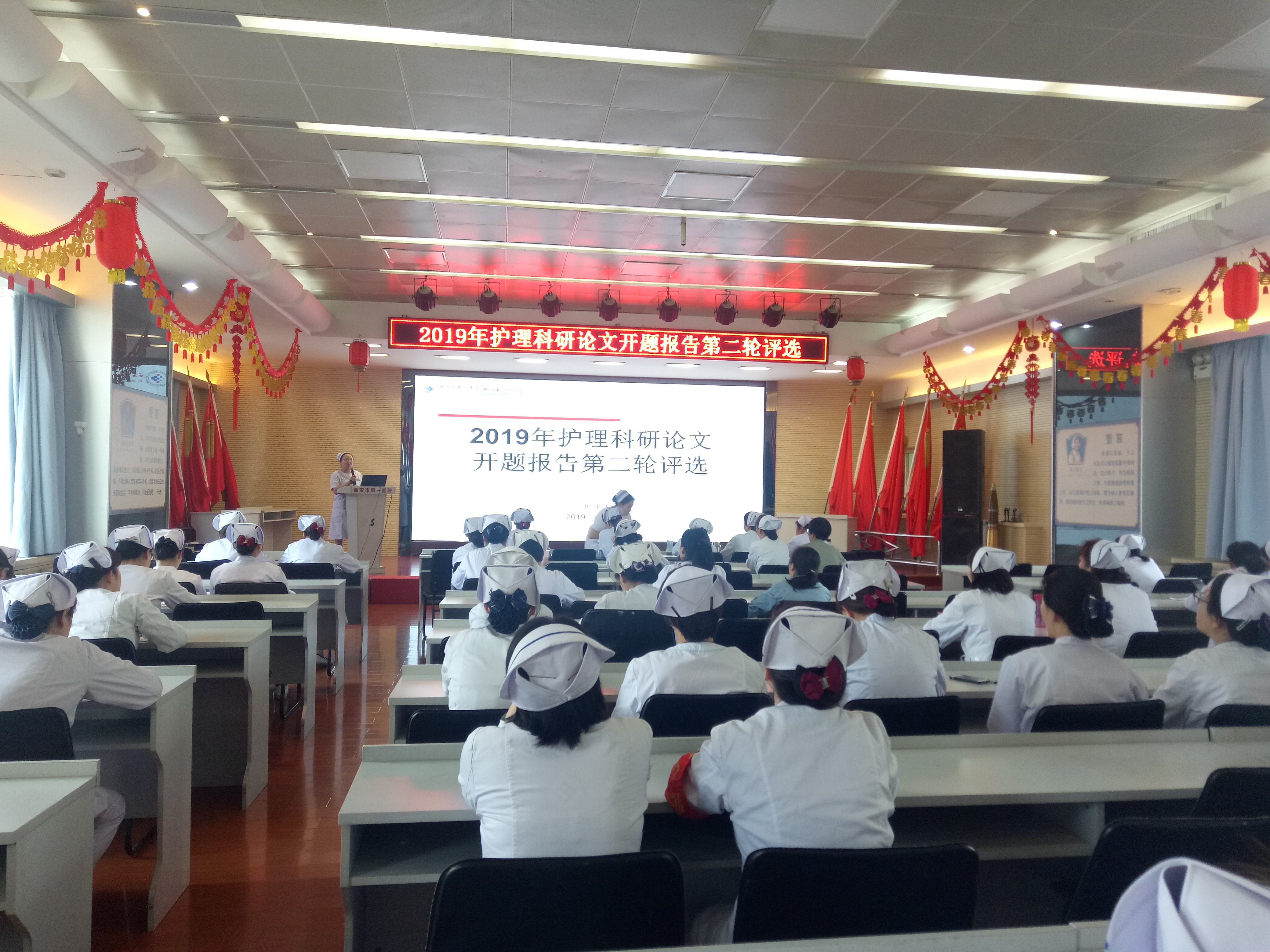 在心血管五楼会议室,举办N3层级护士科研开题决赛,全院N3层级护士、各科室护士长、院级护理科研小组成员约150余人参加。