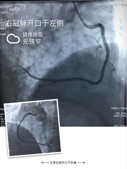 初步检查发现患者为罕见的脏器反位,右位心,考虑患者的冠状动脉窦及开口位置应该为正常反位置,增加了冠脉造影手术难度,但患者胸闷、胸痛反复发作,运动负荷实验为诱发检查,检查中可能出现诱发加重心绞痛的风险,不适合应用,为明确冠心病诊断,及明确冠脉病变程度,指导治疗原则和及时治疗避免心血管危险的急性事件发生,需要积极完善冠脉造影检查。