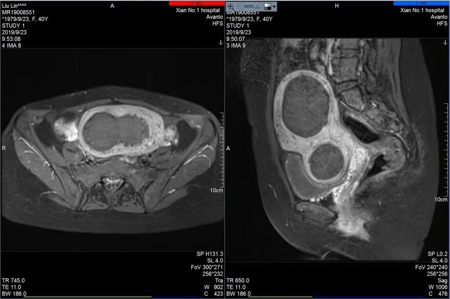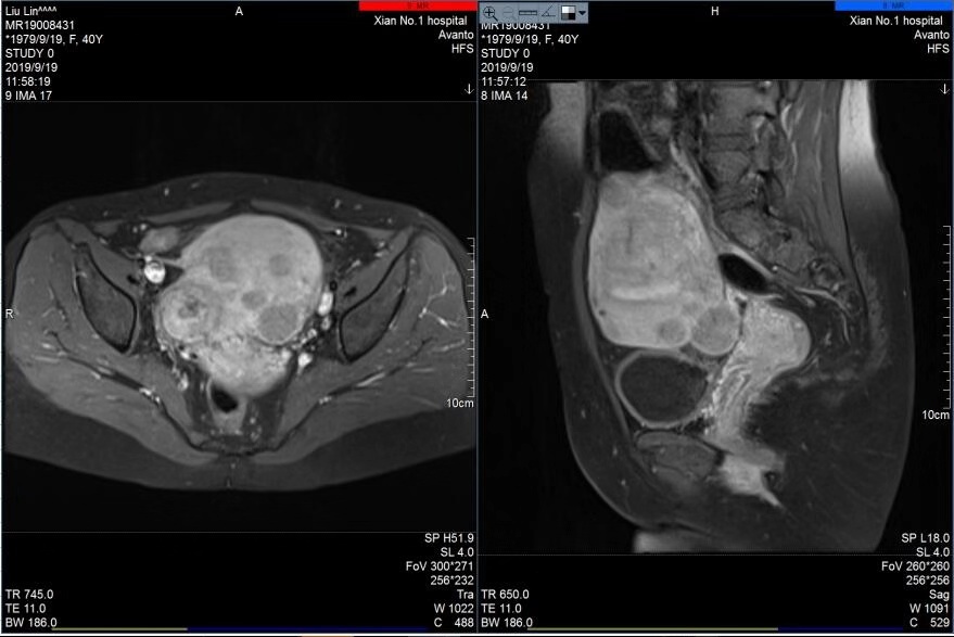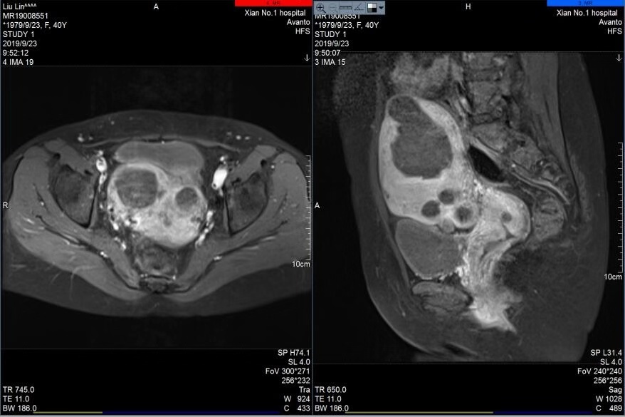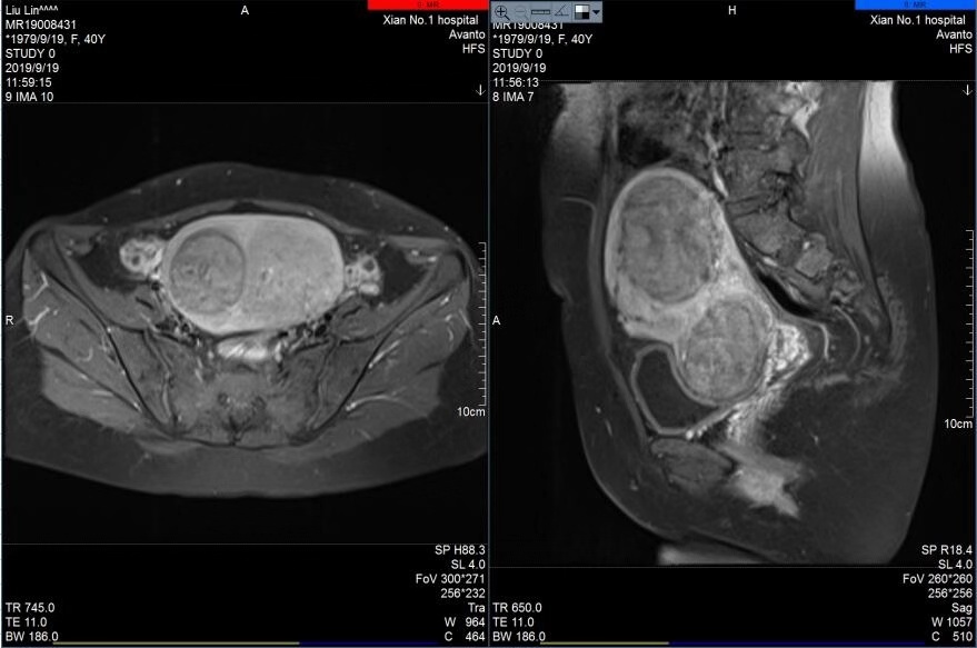刘女士12年前体检发现患有多发性子宫肌瘤,定期复查,1月前于陕西省人民医院行B超检查提示:子宫肌瘤增大,考虑腺肌症并肌瘤形成,建议手术治疗。由于患者惧怕开刀,所以一直未做手术治疗,只能定期随访观察。得知男同视频