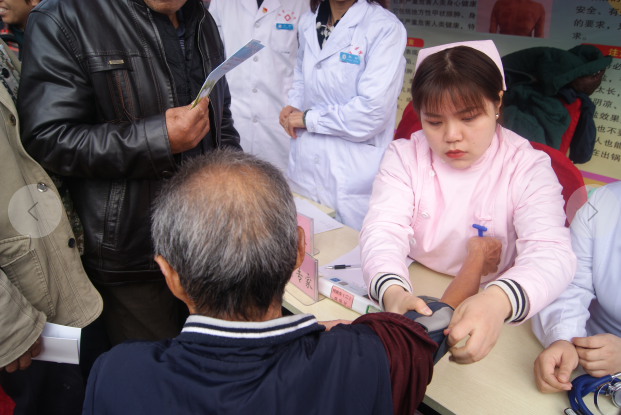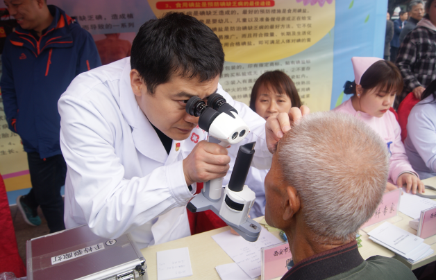 一行人员准时出发,历经2个小时的车程到达周至县八云塔广场,事先得到义诊通知的村民们已经早早等候在现场,医疗队刚到义诊点拿出检查器械,还来不及在义诊席坐定便迎来了数位前来咨询的村民,医疗队专家们迅速地进入工作状态,前来就诊的群众络绎不绝,专家们认真聆听患者病情陈述、询问患者生活习惯,为其提供切实可行的就医方案。据统计,本次义诊活动接待咨询的群众100余人,为群众测量血压 人次,检测血糖60余人次,裂隙灯、眼底镜检查40余人次,现场发放各类药品价值2000余元。