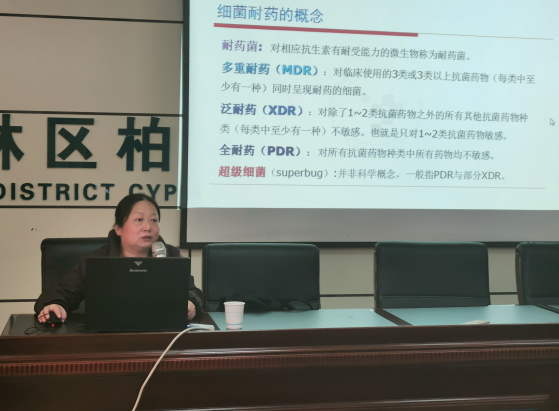院感无小事,防控靠大家。培训会上,闫科长就目前我国控制多重耐药菌感染面临的严峻形势,结合国家行政部门在多重耐药菌防控方面的相关要求,对多重耐药菌的基本概念、耐药机制、常见类型、感染的危险因素及危害、院内防控措施等为大家进行了详细讲解。要求大家在临床工作中要从细节做起,切实遵守手卫生、无菌技术操作规程、严格实施隔离措施、合理规范使用抗菌药物等预防与控制措施,特别要认识到手卫生在预防多重耐药菌传播中的重要性,真正做到学感染、懂感控,让患者更安全。