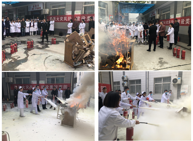 在教官的指挥下依次进行了实战灭火演练,白敏芳纪委书记、刘佩勇副院长、邵景副院长、蔡秀莲总会计师及全院医护人员拿起灭火器,按照操作要领进行了灭火演练,人人上手操作。