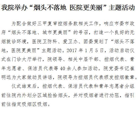 男同视频 举办“烟头不落地 医院更美丽”主题活动