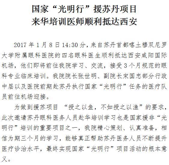 国家“光明行”援苏丹项目来华培训医师顺利抵达西安