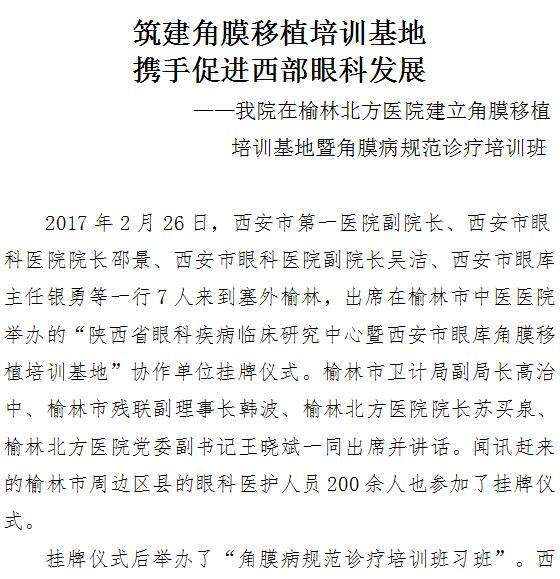 男同视频 在榆林北方医院建立角膜移植培训基地暨角膜病规范诊疗培训班