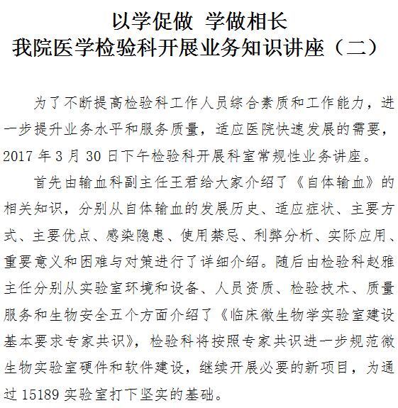 以学促做 学做相长 ——男同视频 医学检验科开展业务知识讲座(二)