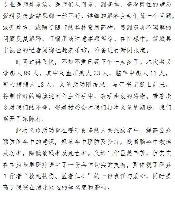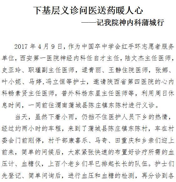 下基层义诊问医送药暖人心 ——记男同视频 神内科蒲城行