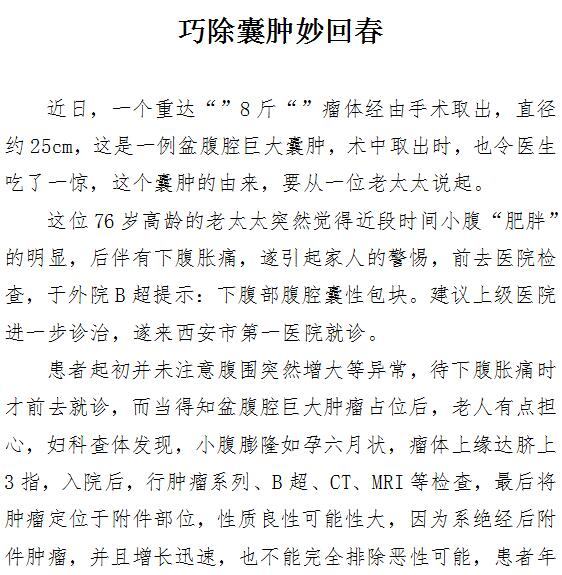 巧除囊肿妙回春
