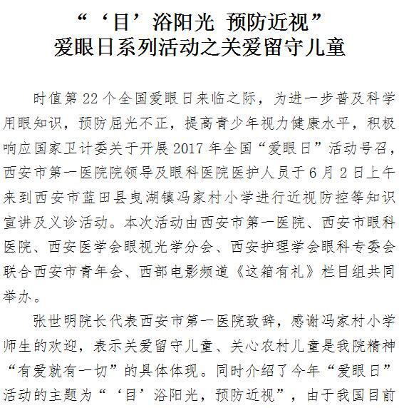 “‘目’浴阳光 预防近视”爱眼日系列活动之关爱留守儿童