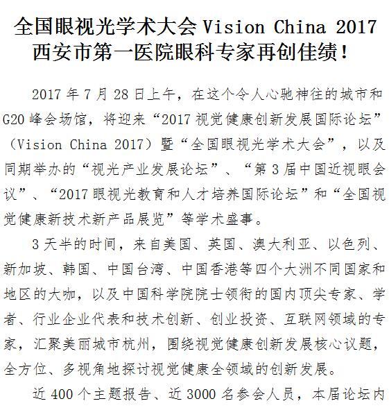 全国眼视光学术大会Vision China 2017男同视频 眼科专家再创佳绩!