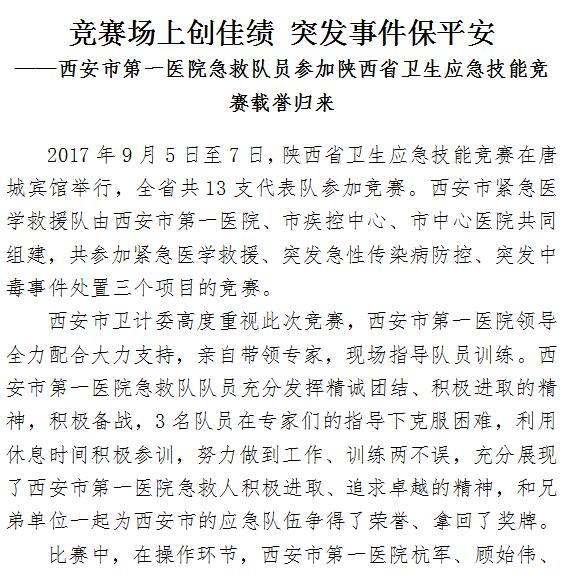竞赛场上创佳绩 突发事件保平安