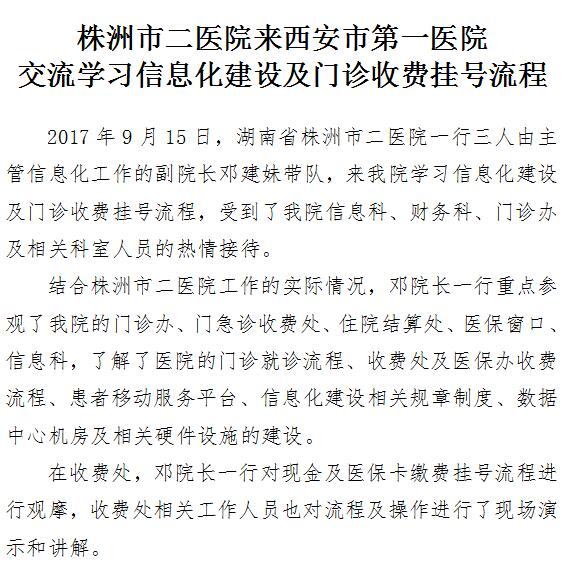 株洲市二医院来男同视频 交流学习信息化建设及门诊收费挂号流程
