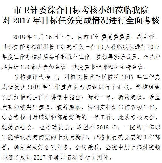 市卫计委综合目标考核小组莅临男同视频 对2017年目标任务完成情况进行全面考核