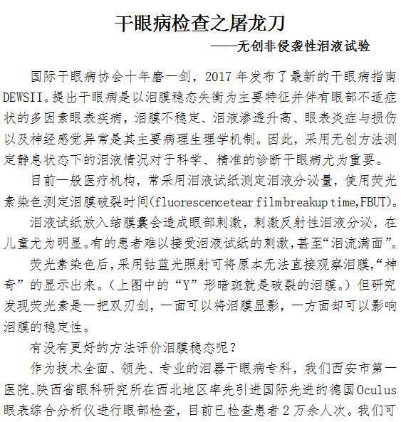 干眼病检查之屠龙刀 ——无创非侵袭性泪液试验