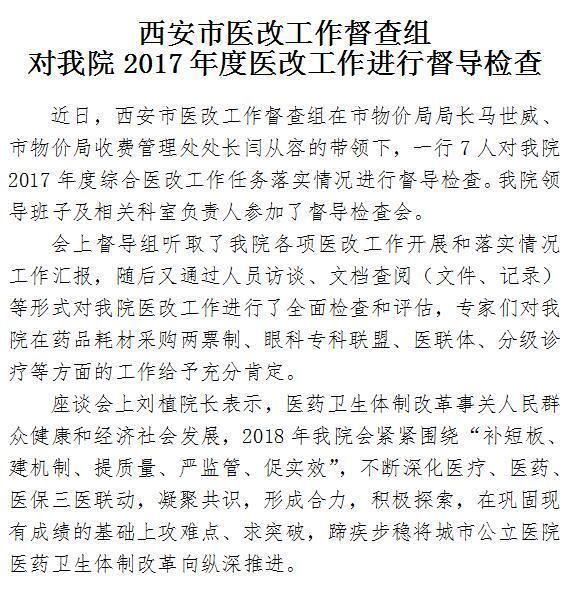 西安市医改工作督查组对男同视频 2017年度医改工作进行督导检查